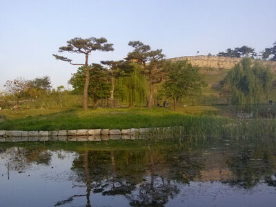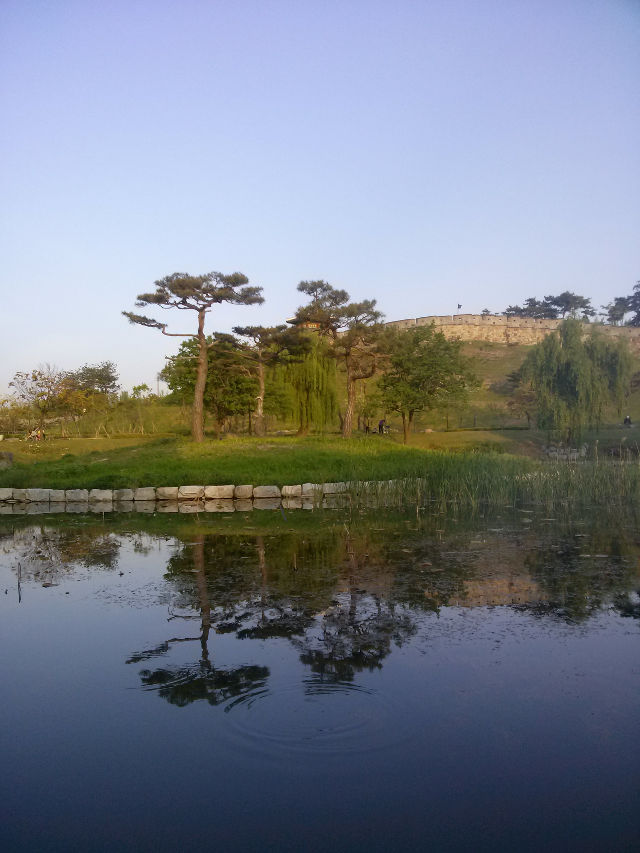 용연에서 본 수원화성